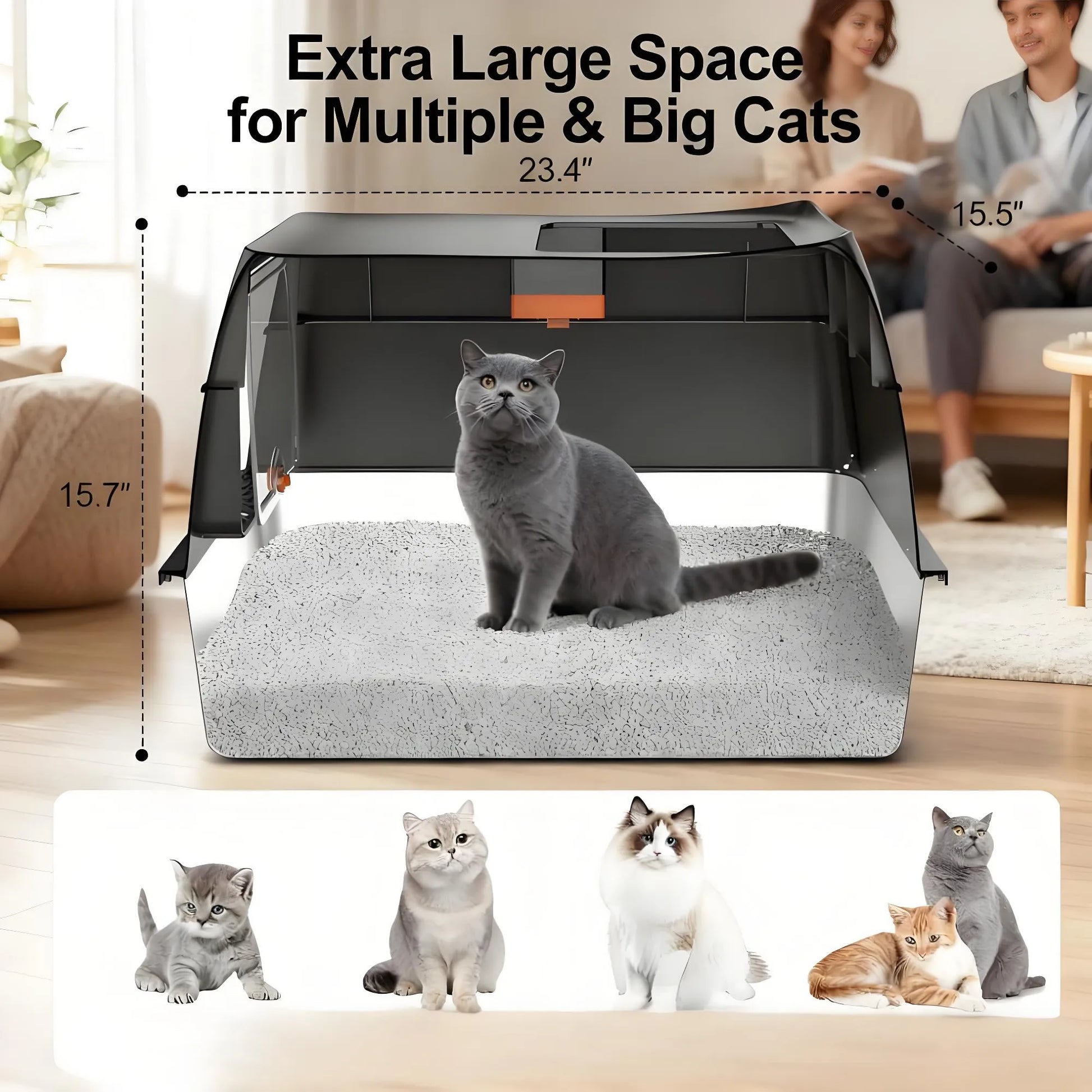 Tired of constantly changing the litter box? Upgrade to our extra-large stainless steel cat litter box, built to last up to 5 years without warping. Unlike plastic alternatives, this metal box is easy to clean—it doesn't absorb odors or cling to waste (best results with 20lb of cat litter).